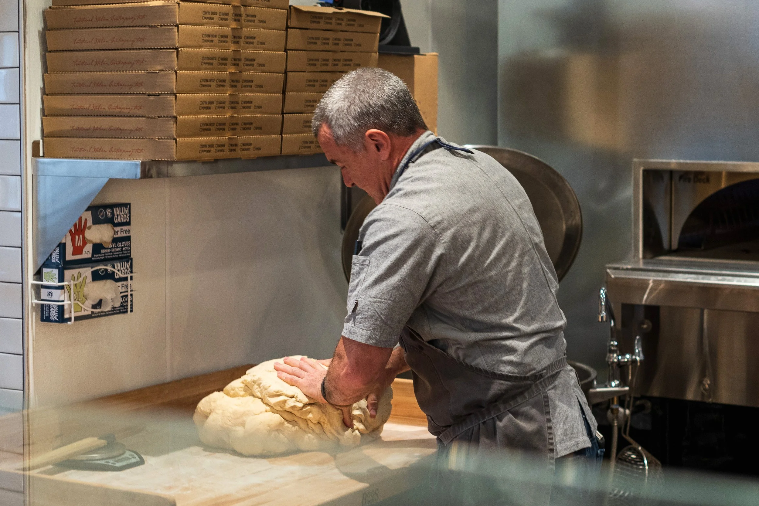 We hand-roll our dough on a hardwood surface for artisanal quality.