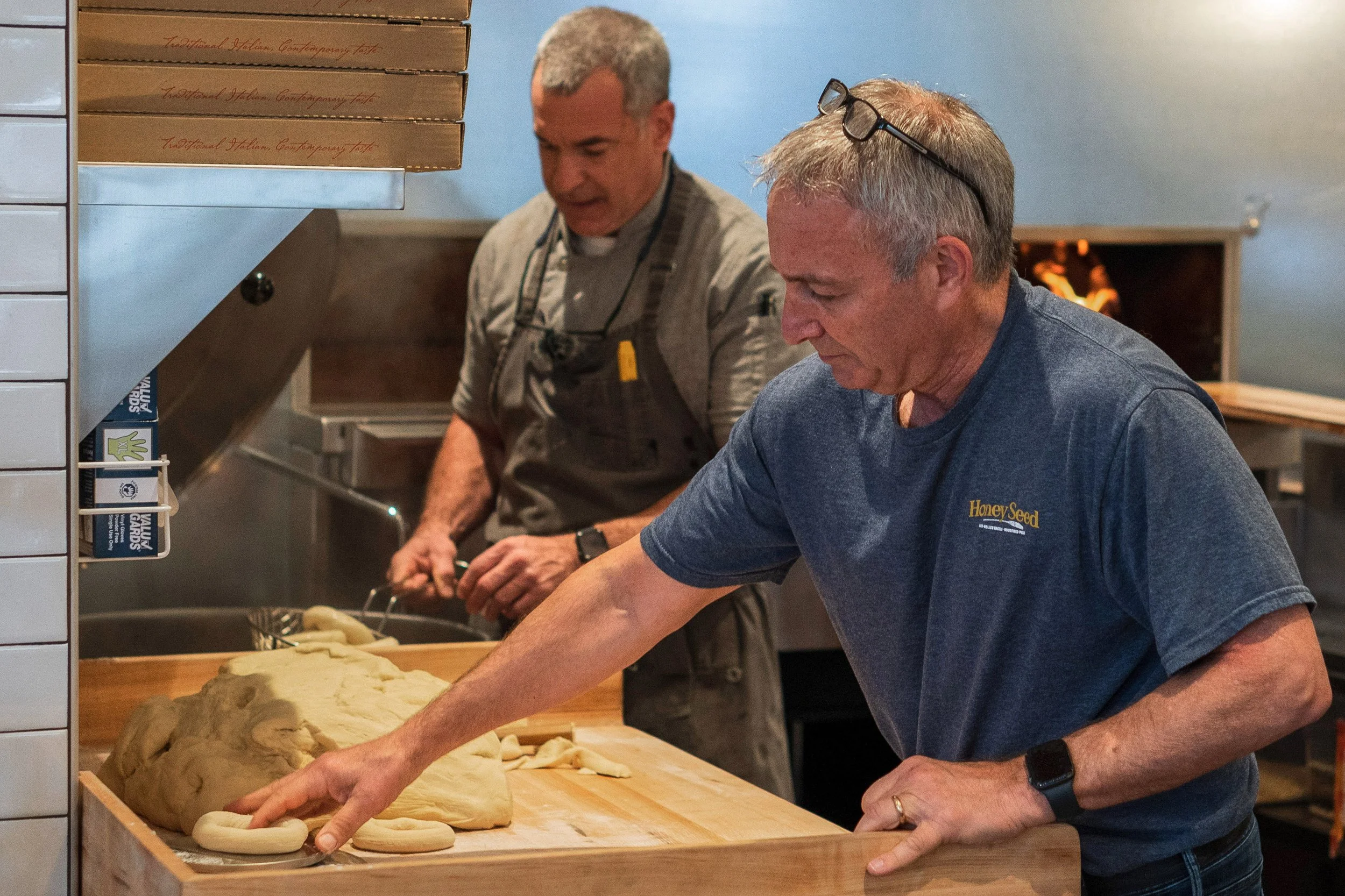 See how we prepare our hand-rolled Montréal style bagels at Honey Seed.